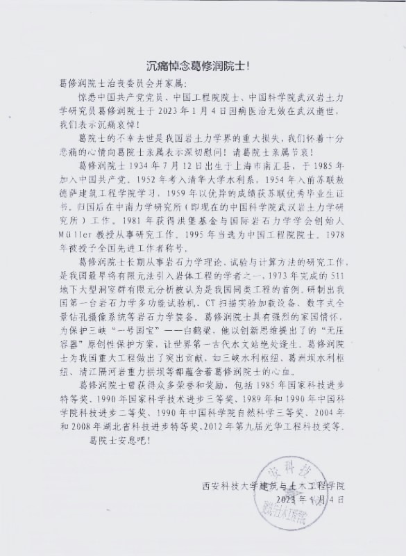 西安科技大学建筑与土木工程学院唁电