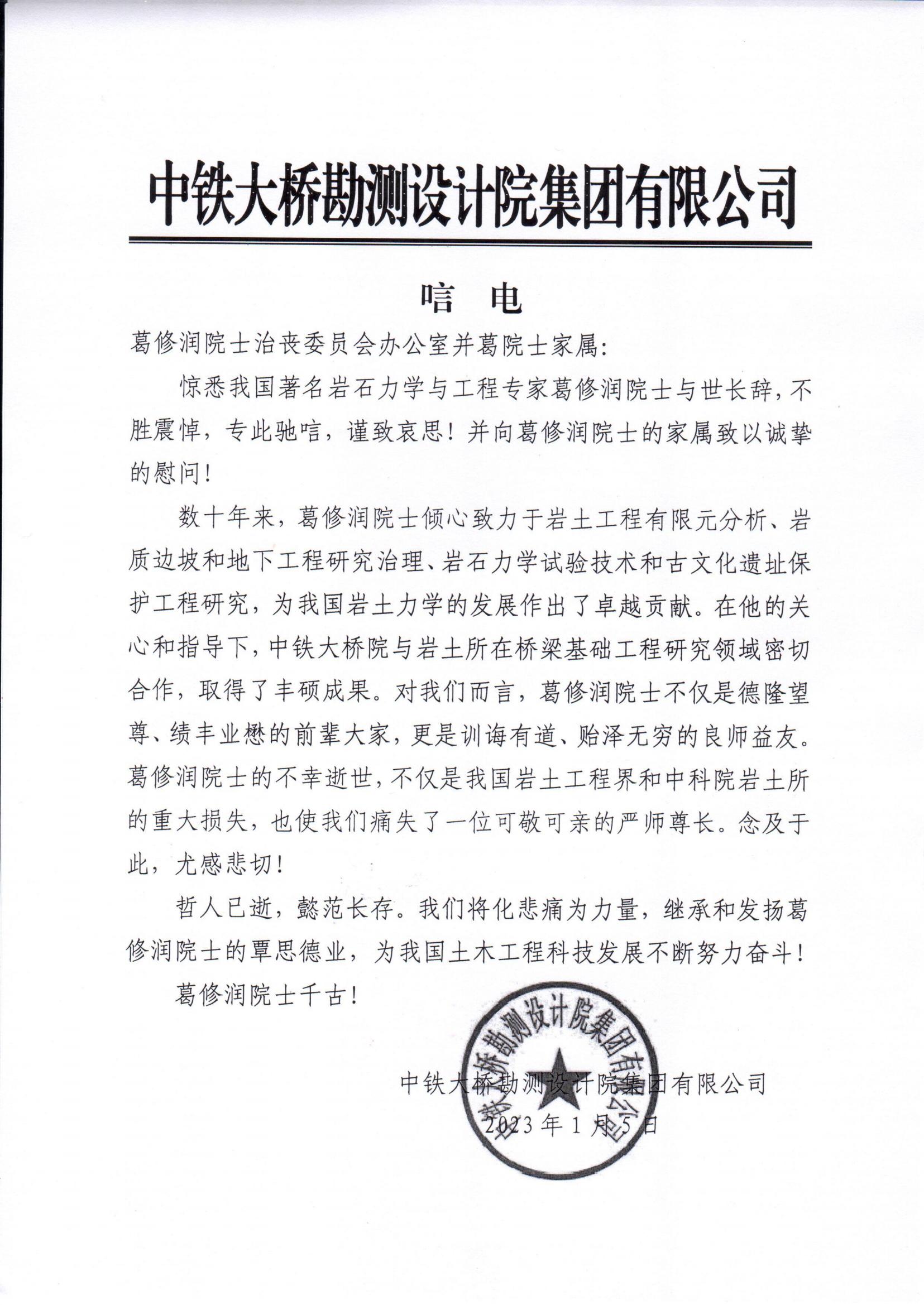 中铁大桥勘测设计院集团有限公司唁电