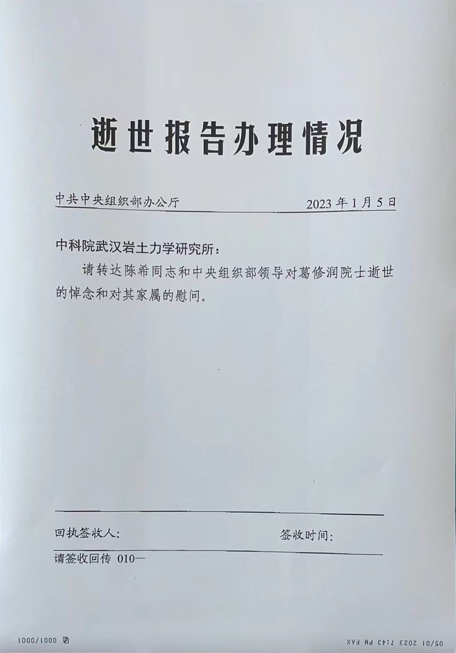 中共中央组织部办公厅唁电