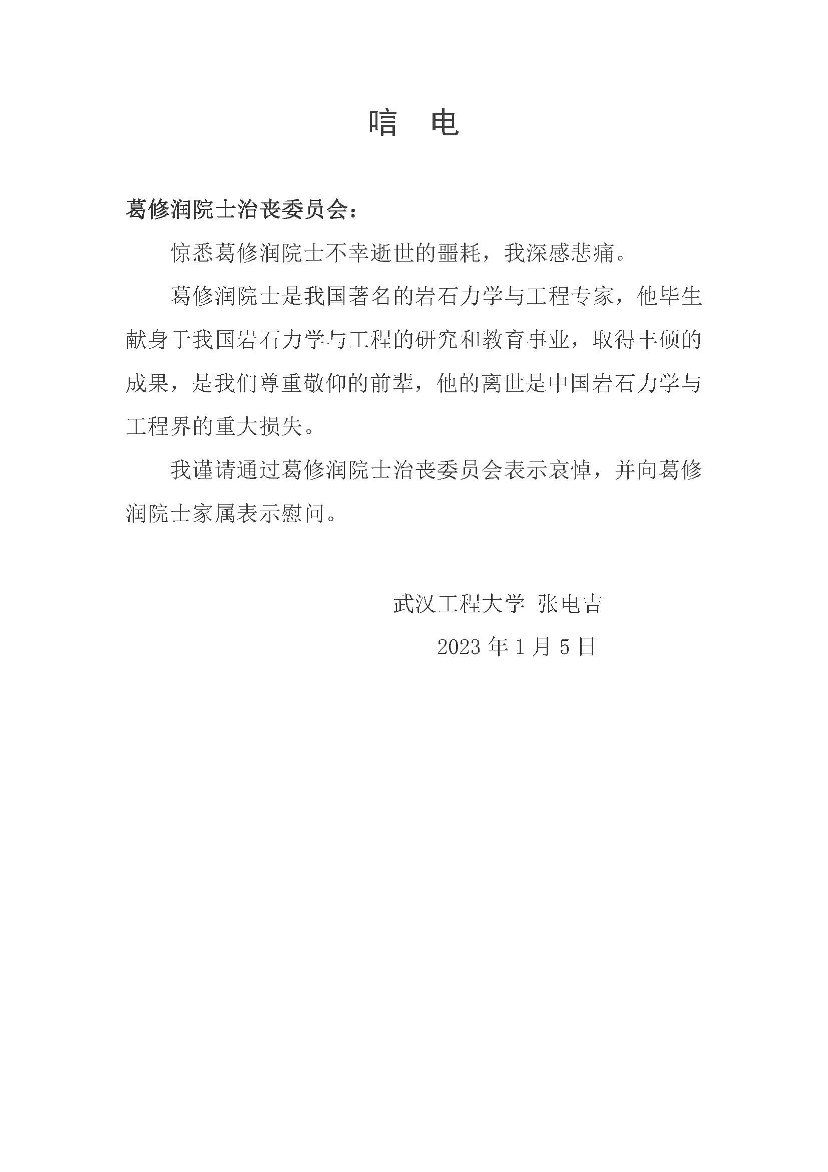 张电吉|唁电