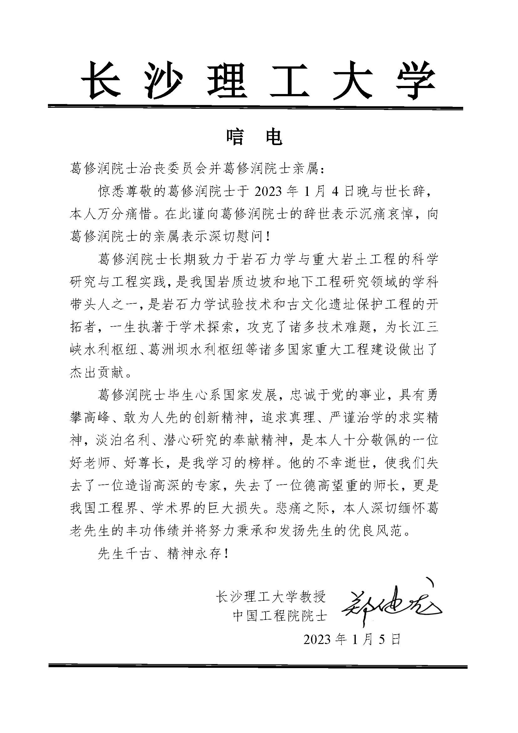 郑健龙|唁电